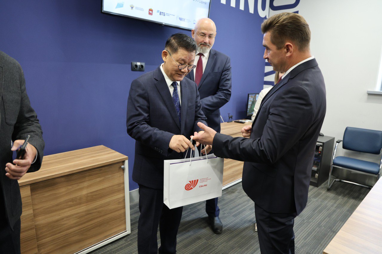 Гостям провели небольшую экскурсию по межуниверситетскому кампусу и инфраструктурным объектам ЧелГУ, после чего представители КНР вместе с ректорами вузов региона обсудили перспективы научно-образовательного сотрудничества.