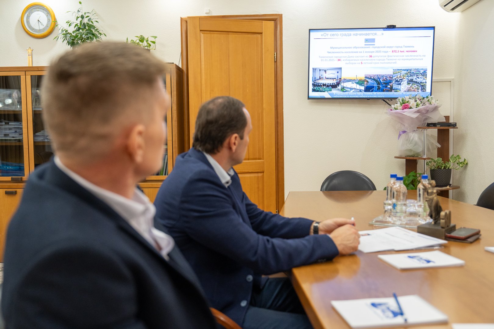 В Тюменской городской Думе прошла встреча с участниками проекта Олегом Бабаевым, Сергеем Бортой и Разипой Жимбаевой. Председатель Светлана Иванова и депутат Дмитрий Антипов, который выступает в качестве наставника, рассказали о работе представительного органа власти.