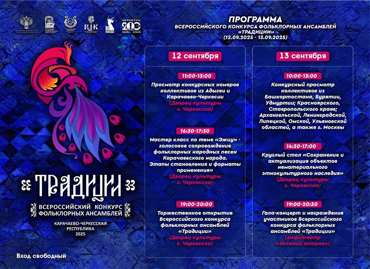 С 12 по 14 сентября Черкесск станет центром притяжения для любителей традиционной культуры: у нас пройдет всероссийский конкурс фольклорных ансамблей «Традиции».