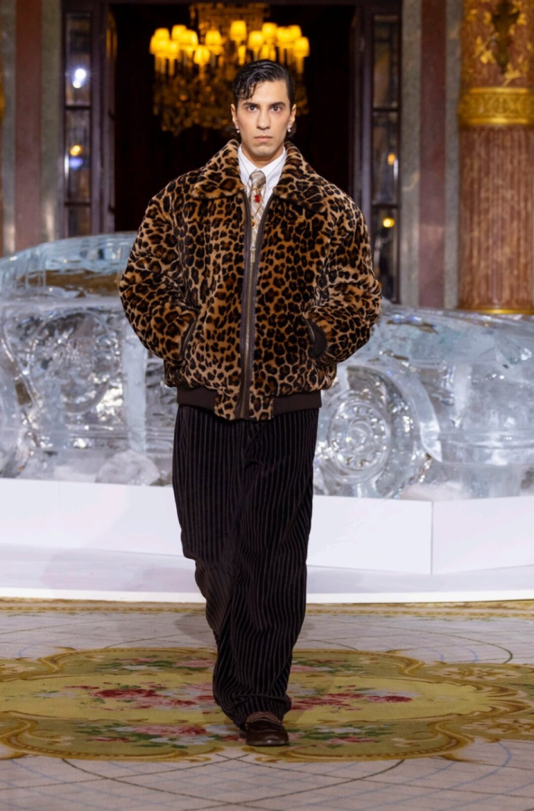 Лео-пятнышки Drole de Monsieur«Мяускулинность в исполнении стритвир-гуру Drole de Monsieur (уважают Майк Тайсон и рэп-исполнитель Future!): миксуем ласковый и нежный бомбер с mob-брюками и цветочным галстуком», —Рустэм Хайбуллин, фаундер концепт-стора «Аутпак»