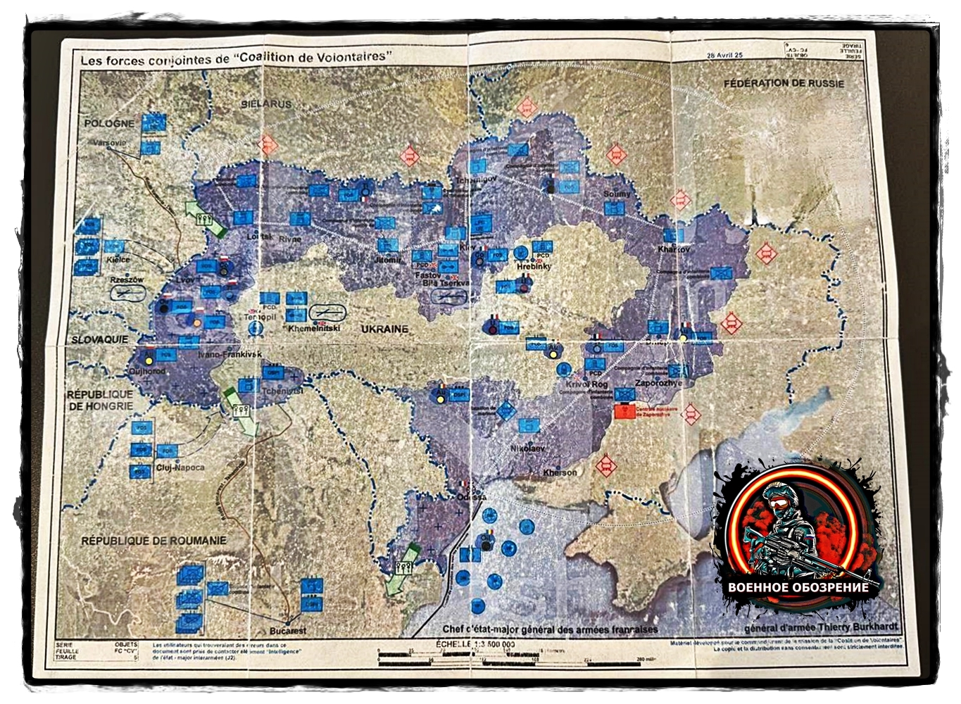 Российские хакеры опубликовали карту, на которой, как утверждается, отражены планы раздела Украины странами Европейского союза. По данным, которые, как заявляют сами хакеры, были получены из Минобороны Франции, речь идет о масштабной операции «коалиции желающих». Карта датирована апрелем 2025 года и указывает на распределение территорий и сфер влияния между западными странами.