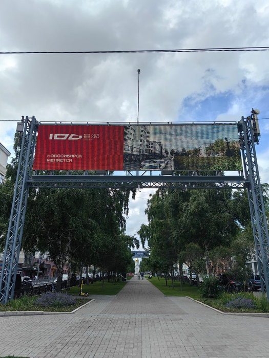 В настоящее время на цифровых билбордах, расположенных в городе, демонстрируются первые фотоколлажи, на которых отражено прошлое и настоящее Новосибирска.