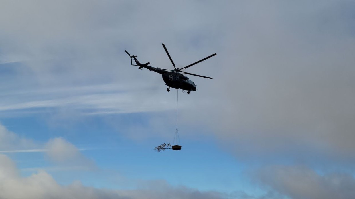 "Вес одной гусеничный ленты составляет 2400 кг. Было сделано два рейса. Хорошо, что с нами работают такие профессиональные пилоты, которые выполняют сложные воздушные работы", - рассказал заместитель механика по ТЗТ, РММ Вячеслав Завгородний.