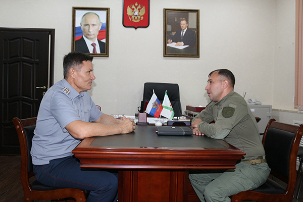 Начальник ОФСИН России по Республике Ингушетия, полковник внутренней службы Наурби Бекмухамбетов провел рабочую встречу с руководителем регионального отделения «Офицеры России» и членом общественного совета программы «Путь героя» Русланом Галаевым.