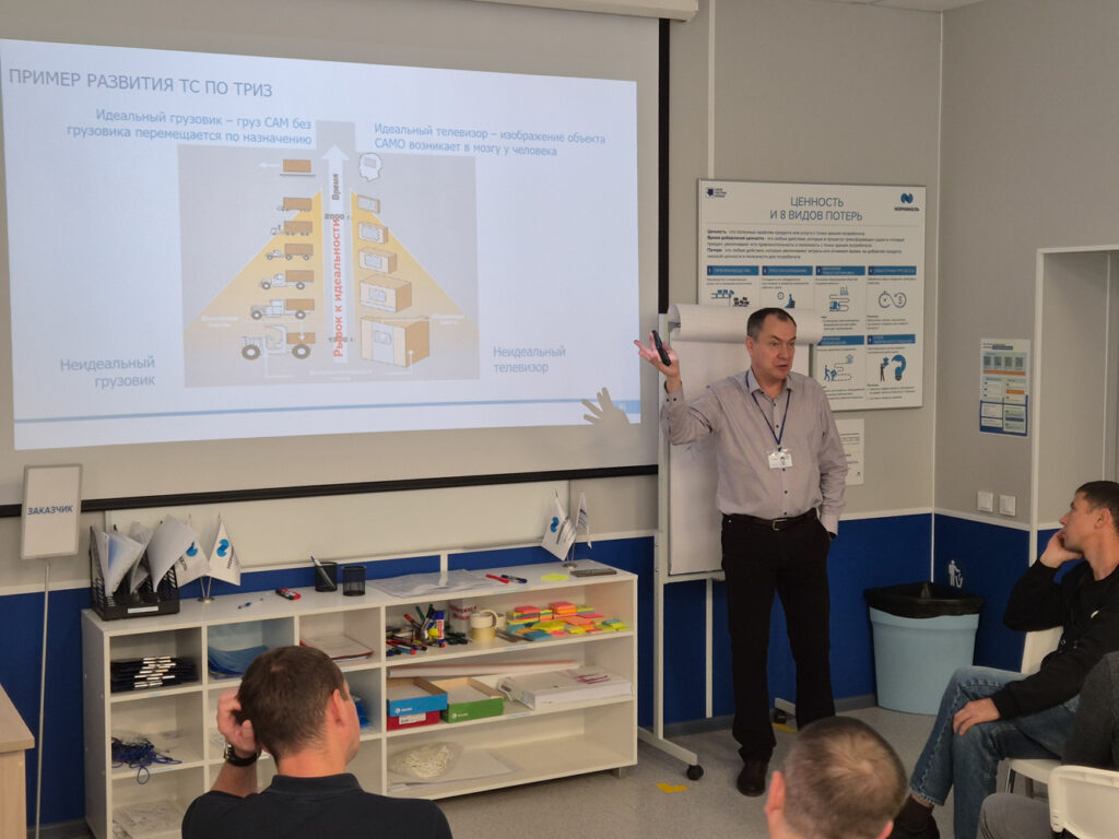 «Это первая группа кадрового резерва в Норильске, которая проходит программу ТРИЗ, разработанную совместно с вертикалью повышения эффективности и корпоративным университетом «Норильский никель». Участники тренинга путем анализа и синтеза исследуют производственные проблемы компании и на основе ТРИЗ предложат конкретные решения в группах. Самые эффективные идеи станут актуальными для последующего внедрения», – объясняет суть занятий начальник управления методологии, стратегии и отчетности ЗФ «Норникеля» Егор Рыбин.