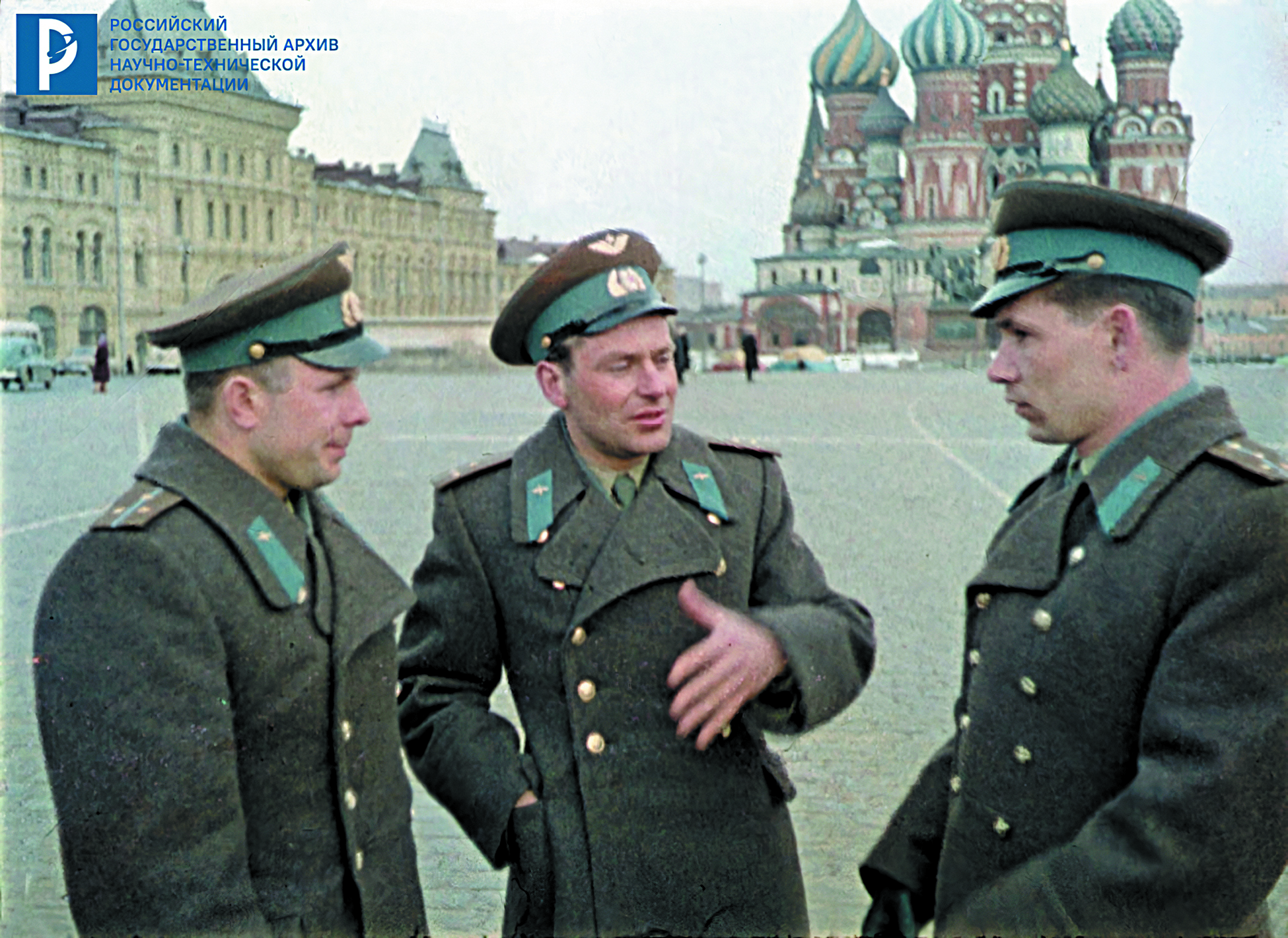 Космонавты Ю. А. Гагарин, Г. С. Титов, Г. Г. Нелюбов на Красной площади. 1961