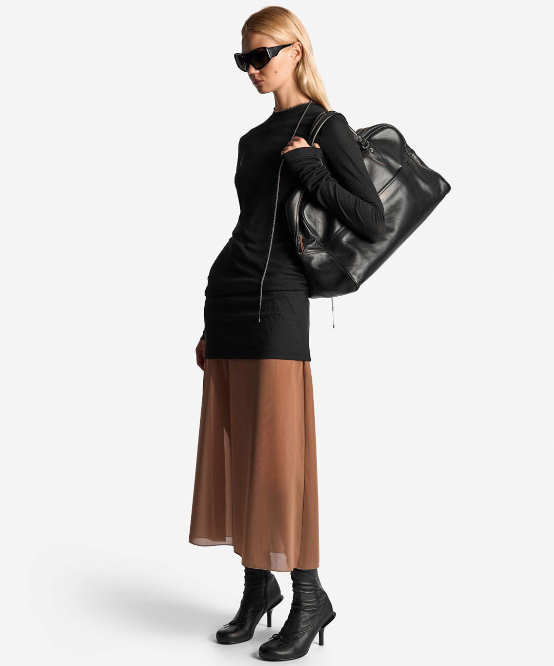 НИНО: Мне кажется, мы начинали с Фиби Файло, со старого Celine. Но я не могу сказать, что мы закончили, я до сих пор собираю коллекцию ее дизайнов. Мартин Маржела был нашим лейтмотивом всегда. Сначала это было интуитивно, на уровне вкуса, а сейчас я хорошо понимаю смыслы, приемы и каноны Мартина и могу перерабатывать его архив с точки зрения не только дизайна, но и идей, потому что в его случае это даже важнее. Демна тоже очень сильно повлиял. Он на- учил закладывать энергию в вещь, чтобы потом эту энергию почувствовал человек, который эту вещь наденет. Первое же мое платье Vetements времен Демны пробудило чувство, что вещь энергетически очень мне подходит, и я чувствую себя в ней на другом уровне. С тех пор мы всегда этот подход с Алисой практиковали на примерках. Алиса была первой фитинг-моделью Ushatava. Помимо того, как вещь сидит, ты должен четко считывать или расспрашивать свою модель о ее состоянии в этой вещи. Нужно понять, как меняется ее эмоция. Главная задача, чтобы человек лучше себя чувствовал в твоей вещи. Такое невозможно подделать. Это либо так, либо не так. Любая вещь несет энергию. И это суперважно учитывать на самом деле.
