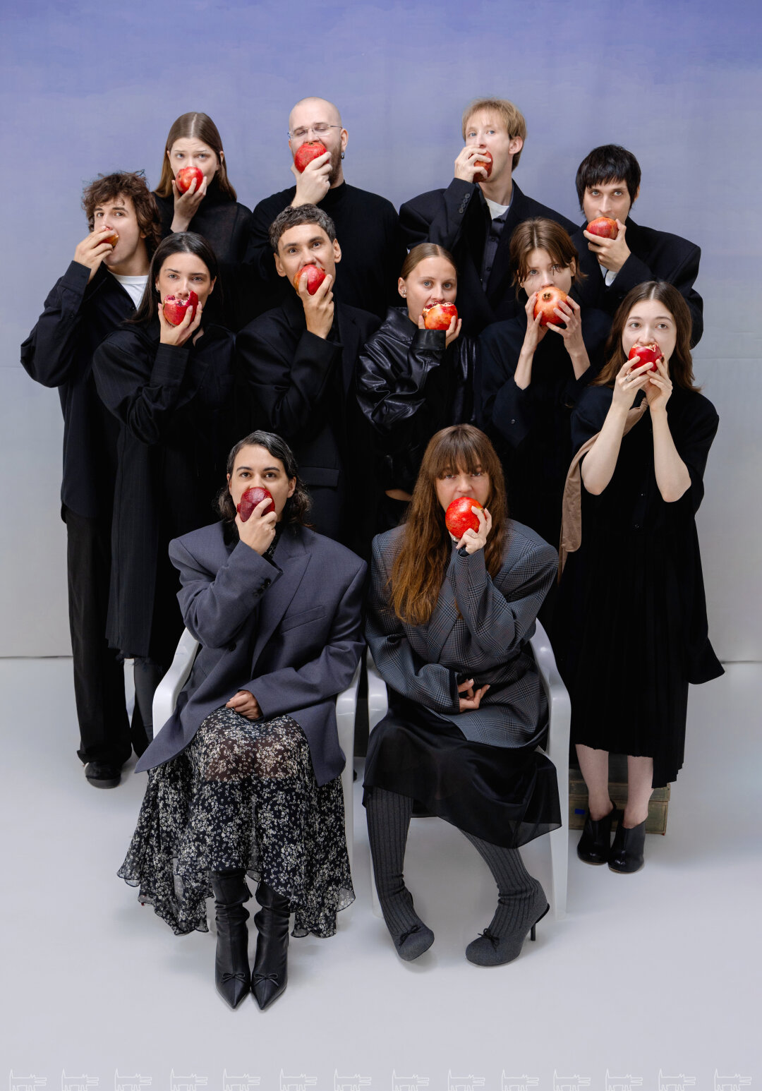 1 — Богдан Гребенюк, дизайнер; 2 — Анастасия Мошкарева, исполнительный продюсер; 3 — Григорий Симонов, креативный дизайнер; 4 — Максим Острейковский, дизайнер; 5 — Анатолий Свиридов, младший дизайнер; 6 — Яна Симорот, контент- менеджер; 7 — Артем Шумов, ведущий дизайнер; 8 — Наталья Чабарова, SMM- менеджер; 9 — Дарья Живая, ассистент креативного директора; 10 — Анжелика Мухаммедова, дизайнер; 11 — Нино Шаматава, кофаундер, креативный директор; 12 — Алиса Ушакова, кофаундер, CEO