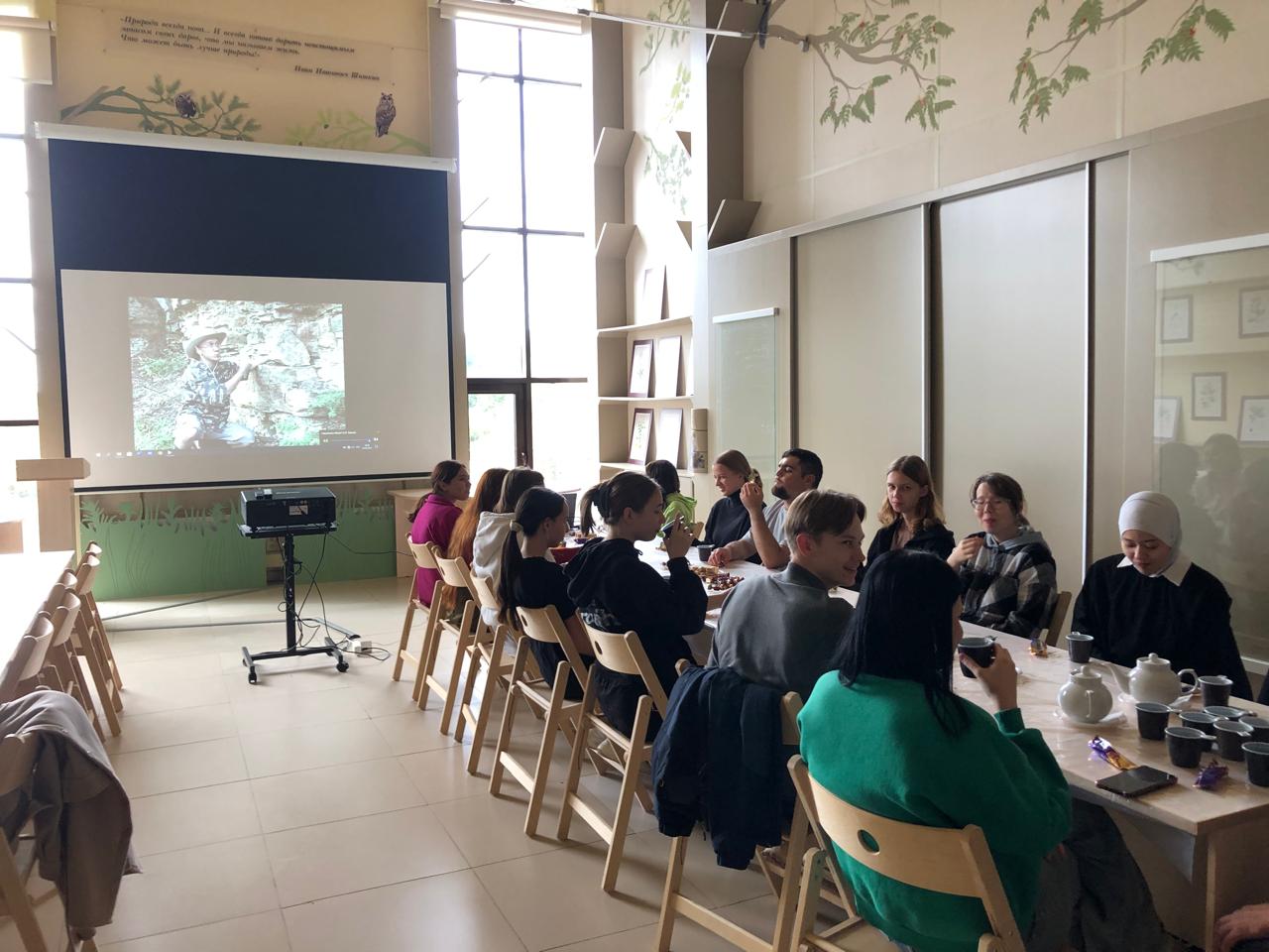 Заместитель директора по экопросвещению, рекреации и туризма Национального парка «Нижняя Кама» Сахбиева Лилия Ахметзяновна рассказала о работе, познакомила с экспозицией визит-центра. Все завершилось чаепитием, просмотром фильмов о природе Национального парка «Нижняя Кама».