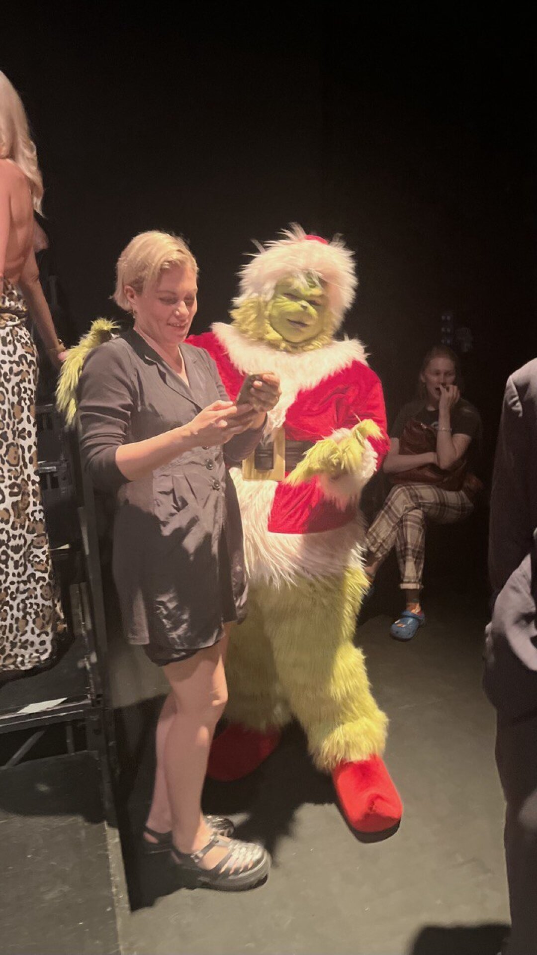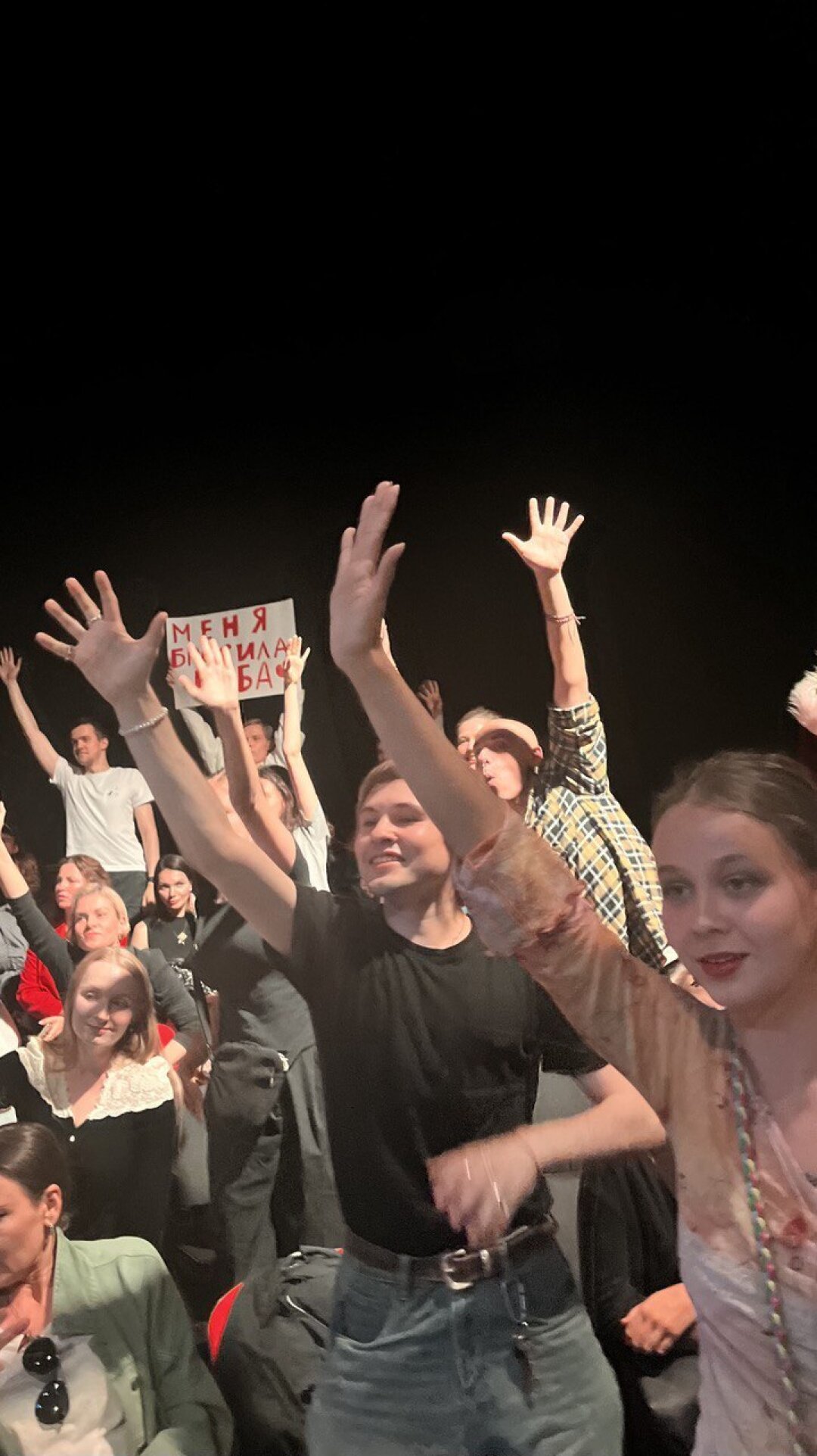 19:00, сцена «Стачка», Театр на Васильевском. У входа необычная концентрация конвенционально красивых людей — сразу видно: актеры. Их желание запомниться выдают костюмы (например, Гринча или классический смокинг для образа Вито Корлеоне из «Крестного отца»), плакаты (самый душераздирающий — «Меня бросила баба!») и даже оружие (секира для образа вернувшейся с ретрита любительницы практик и инсайтов!).