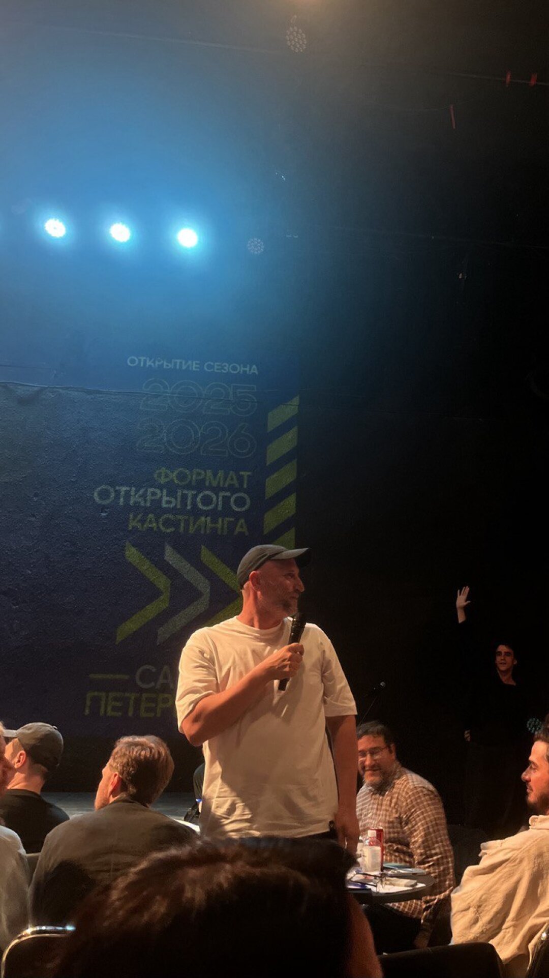 Во время пандемии на карантине я создал телеграм-канал«Профпригодный режиссер»и начал проводить прямые эфиры, куда приглашал кинодеятелей. Вокруг блога сфомировалось комьюнити: пять-шесть тысяч человек. Появился запрос на очную встречу, и мы ее провели. Оказалось неловко и странно, потому что многие пришли на нее с единственной целью — познакомиться со мной и потенциально сняться в каком-то проекте. После этого я предложил Мите (кастинг-агенту Дмитрию Савельеву. — Прим. ред.) создать специальный формат для профессионального представления артистов. И мы его придумали! Открытый микрофон в баре Мити «Сухой закон», где каждый мог бы что-то показать или прочитать. В 2023-м «шапка» была еще несистемная и открытая.