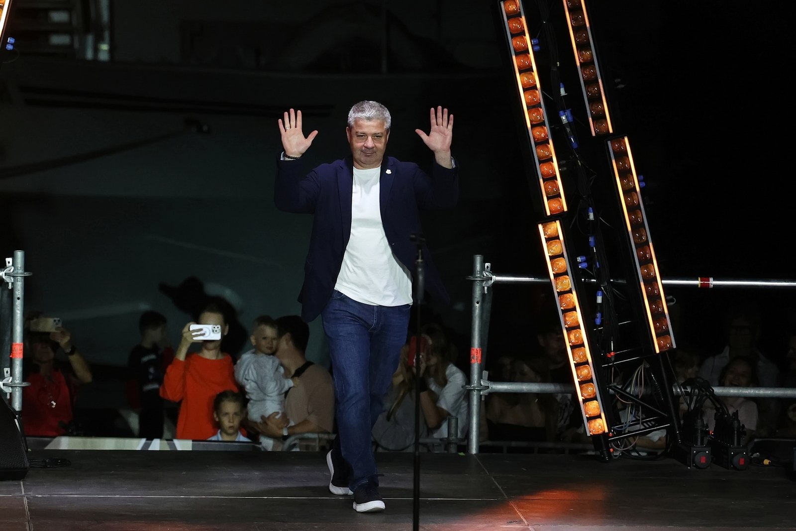 Когда все игроки и тренерский штаб вышли на сцену, с приветственным словом выступил губернатор Приморского края Олег Кожемяко: "Я рад, что сегодня собралось столько болельщиков нашего клуба "Адмирал". И вот перед вами рыцари льда, которые будут биться, как гладиаторы на протяжении всего сезона. А мы все будем болеть за них. Болеть будем, когда они будут на выездных матчах. Болеть будем, когда они будут биться здесь, потому что "Адмирал" — это любимая команда нашего края и нашего города. Давайте пожелаем им удачи и яркой игры".