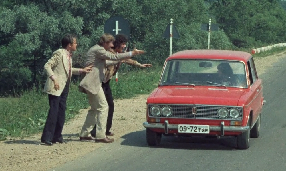 «Трешку» заприметил Эльдар Рязанов. ВАЗ-2103 идеально подходил для съемок советско-итальянского приключения. А сценаристы как раз придумали продолжительный эпизод погони, в котором главные герои преследуют Олю на «позаимствованном» автомобиле. Большинство трюков в погоне выполнил итальянский каскадер Серджо Миони. Хотя сцену со «слепым» вождением доверили советским гонщикам. Для съемок фильма было закуплено 5 «Жигулей» и 5 «Москвичей», однако в некоторых сценах их подменяли итальянские автомобили. «Жигули» Ольги в некоторых эпизодах превращались в Fiat 124, а «Москвич» итальянцев – в Fiat 1300.