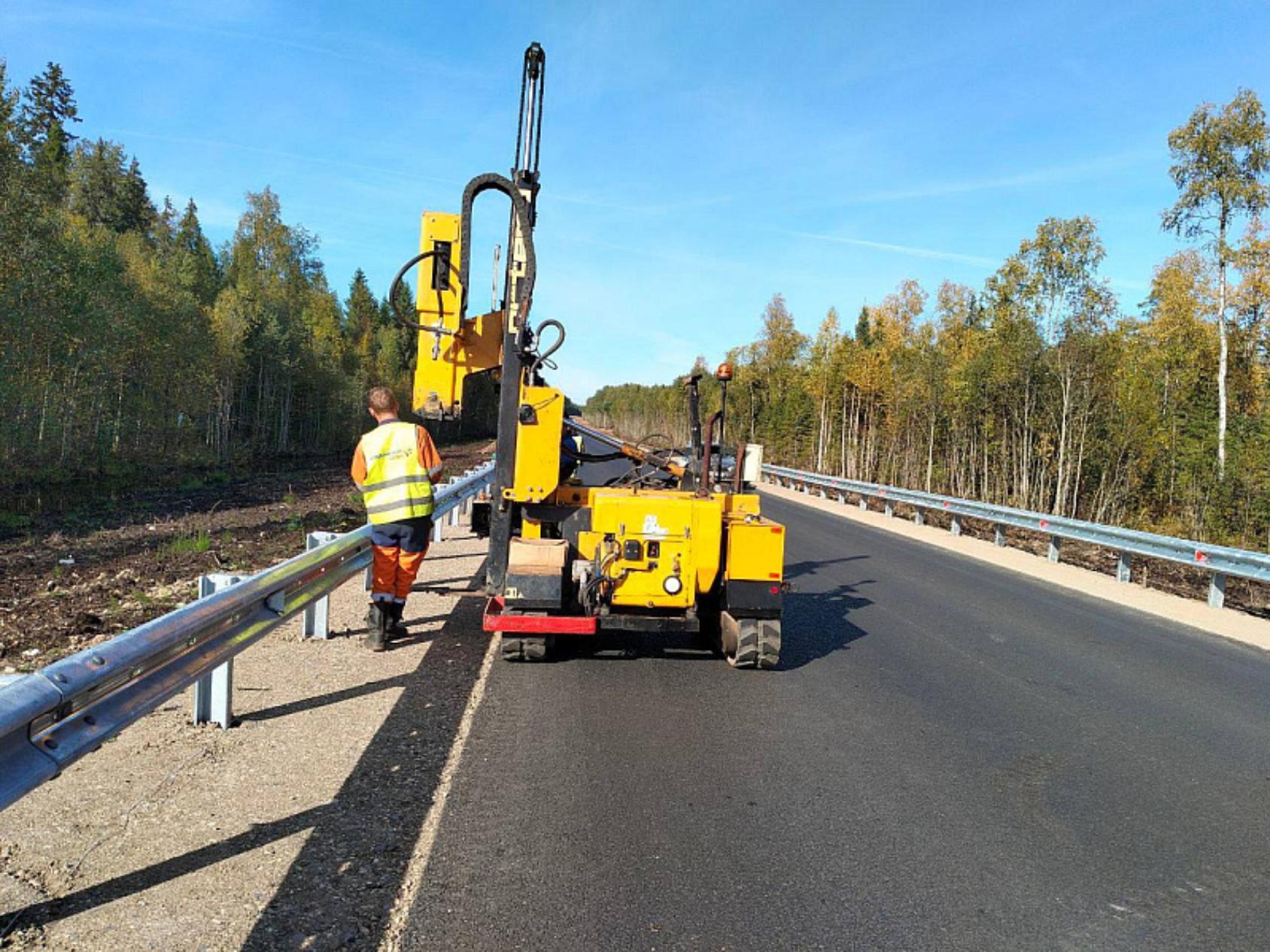— Сейчас подрядчик занимается установкой бортового камня, укреплением обочин и монтажом барьерного ограждения, — отметил губернатор Архангельской области Александр Цыбульский. — Техническая готовность объекта составляет порядка 95%.