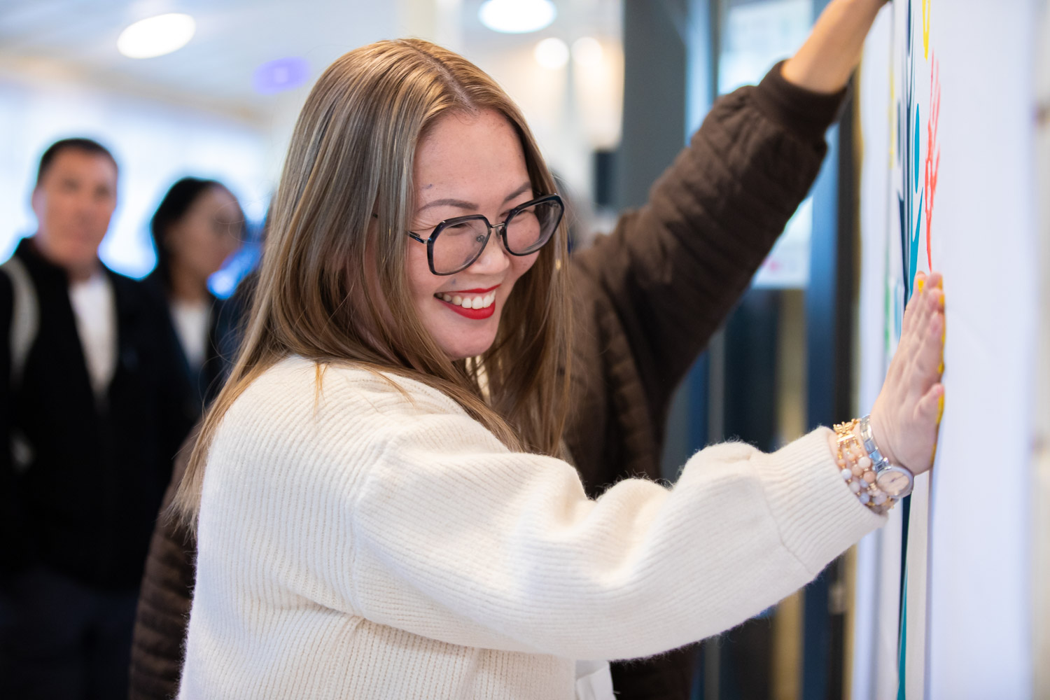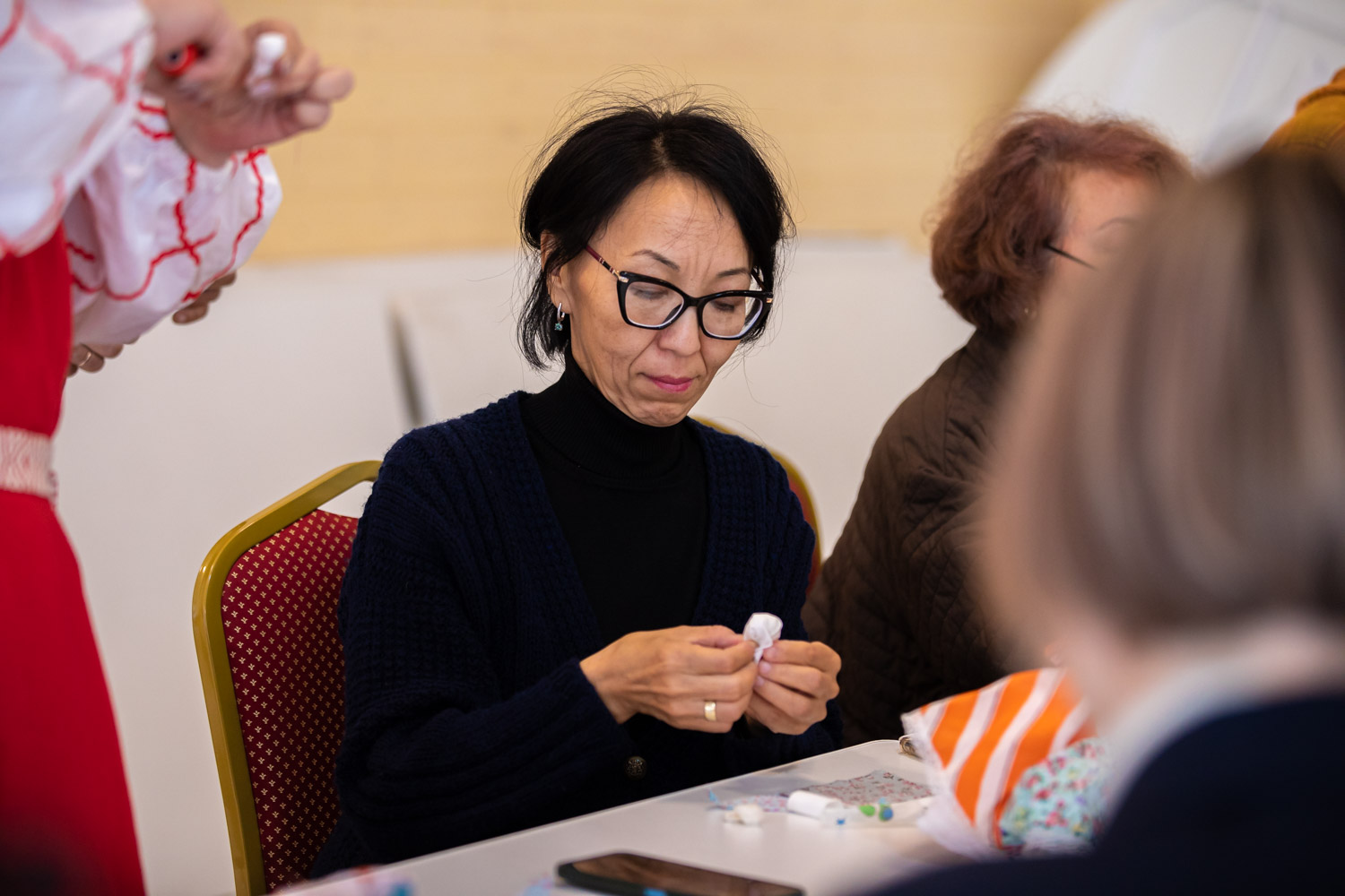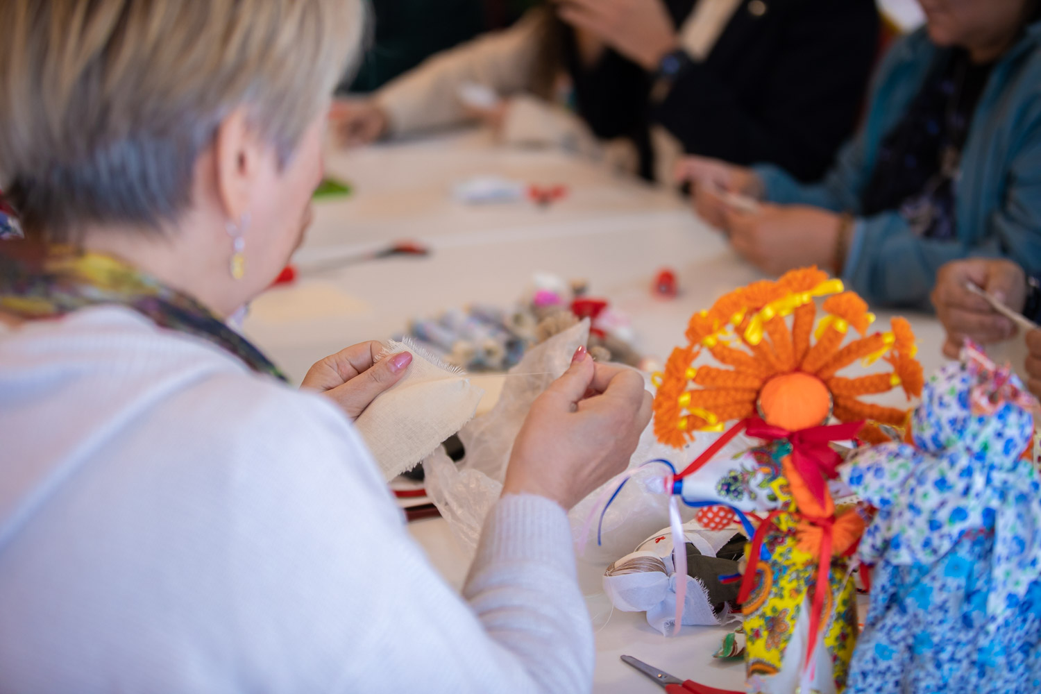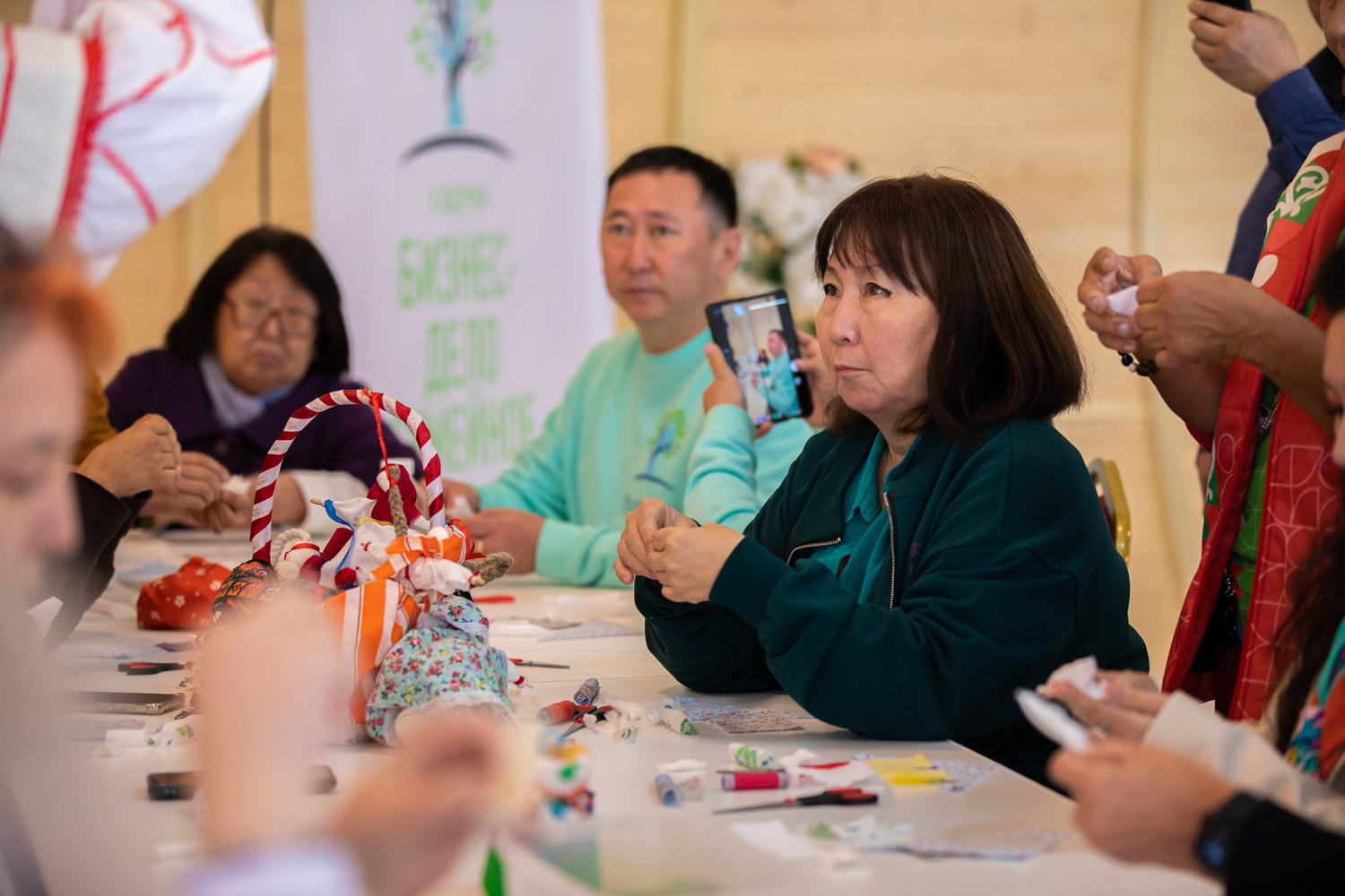 Для всех желающих в рамках форума состоялся мастер-класс по изготовлению оберегов для участников СВО и творческий флешмоб "Цветные ладошки", где каждый мог оставить свой след как представитель семейного бизнеса.