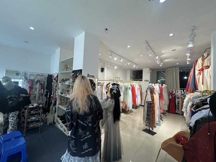 21 августа 2025 года, посетительницы выбирают "ханьфу" в одной из фотостудий в городе Хуньчунь. /Фото: Синьхуа/