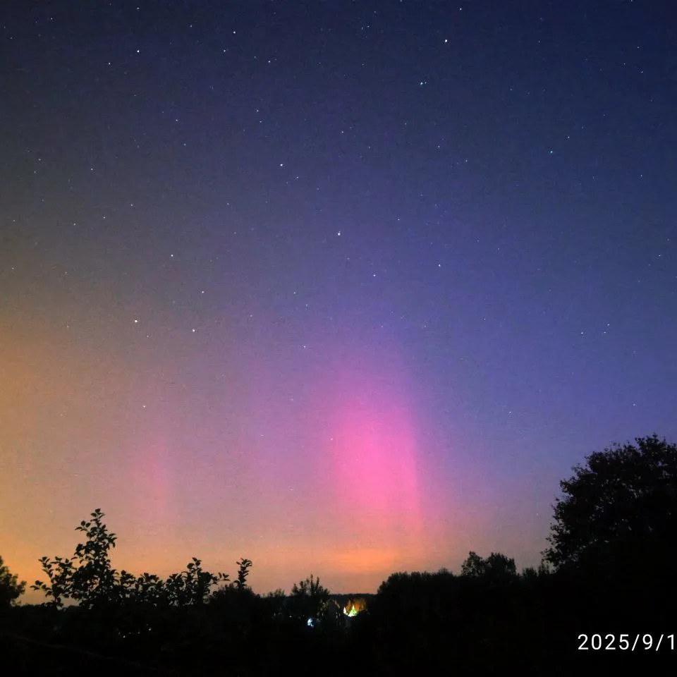 Северное сияние сфотографировали этой ночью в Рязанской области. Снимки публикует телеграм-канал «RZNASTRO».