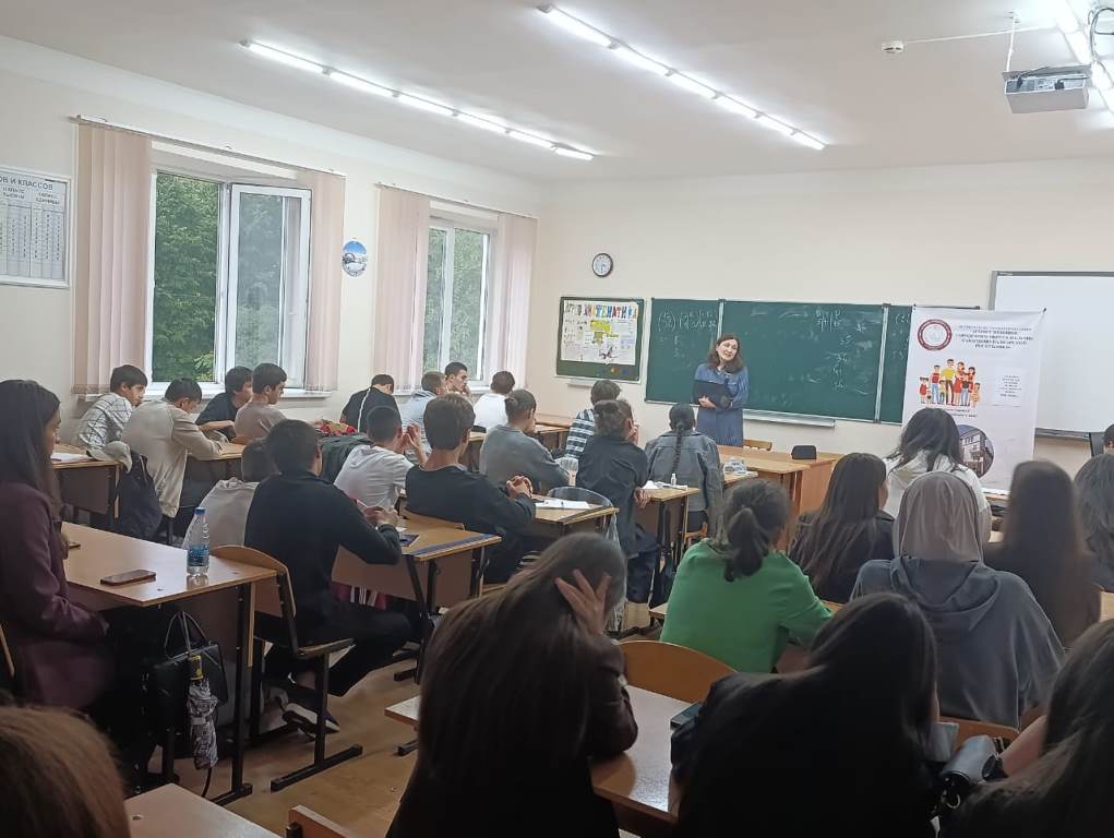 Первая беседа прошла на двух площадках педагогического колледжа Кабардино-Балкарского государственного университета имени Х.М. Бербекова. Студенты с большим интересом слушали Таукенову (Жангуразову) Елизавету Ибрагимовну, кандидата медицинских наук, доцента кафедры госпитальной хирургии медицинской академии КБГУ, члена актива Совета женщин г.о.Нальчик. Елизавета Ибрагимовна – дочь Героя Социалистического труда Ибрагима Даутовича Жангуразова. В своем выступлении она говорила о важности осознанного подхода к сохранению исторической памяти о Великой Отечественной войне, о великой миссии нашего народа – освободителя.