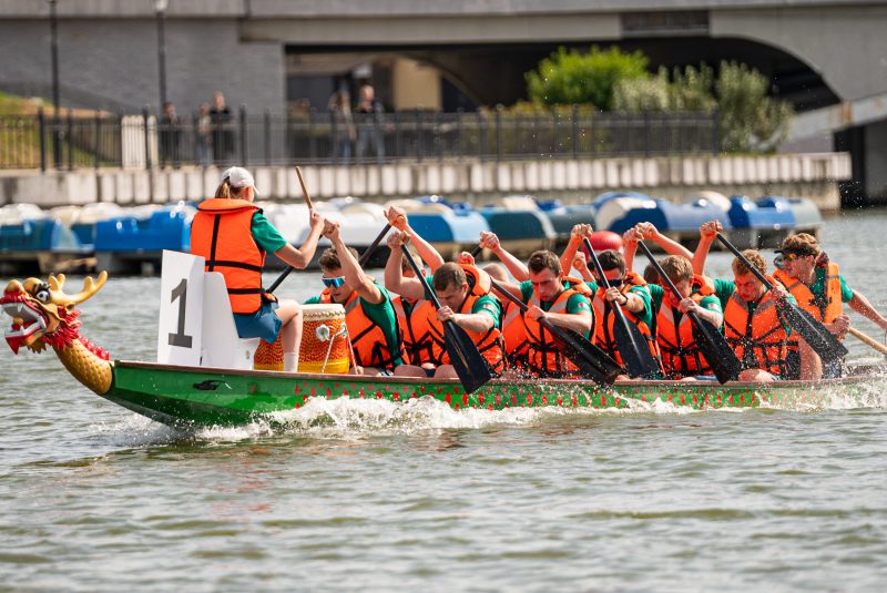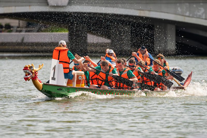 В День города в акватории Свислочи студенческие команды вузов устроили настоящие водные сражения. В гонках на драгонботах приняли участие 22 команды учреждений высшего образования. Мероприятие выдалось ярким и зрелищным.