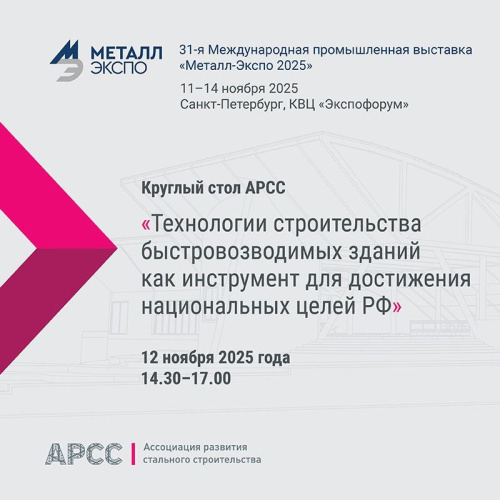 Ассоциация развития стального строительства организует на форуме круглые столы для участников рынка, заинтересованных в теме строительства с применением металлоконструкций.