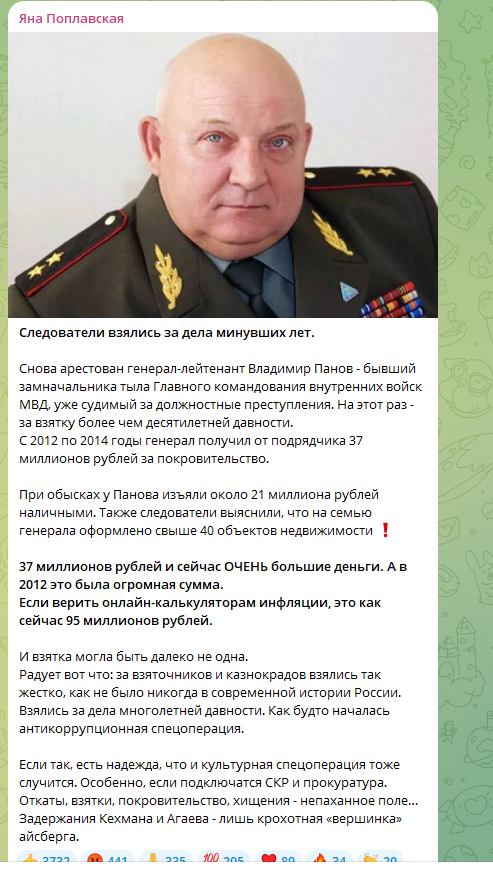 Новости о том, как у очередного генерала нашли миллионы наличкой, не иссякают. Вот очередной такой генерал попался на взятке - правда, аж десятилетней давности. И попался ожидаемо. Как говорится, и снова здравствуйте.