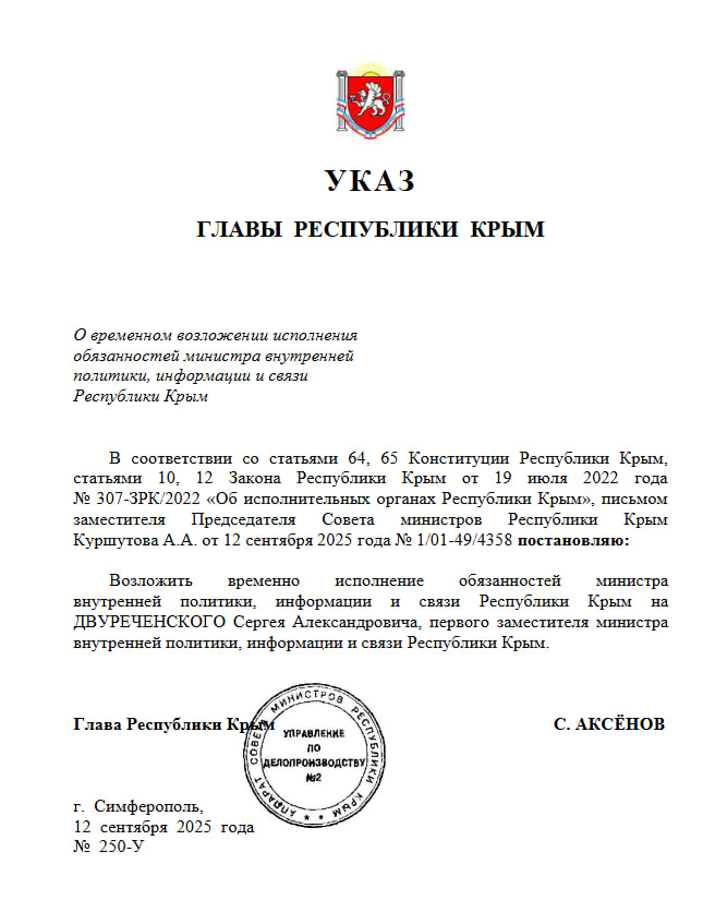 Соответствующий указ подписал Глава Крыма Сергей Аксёнов.