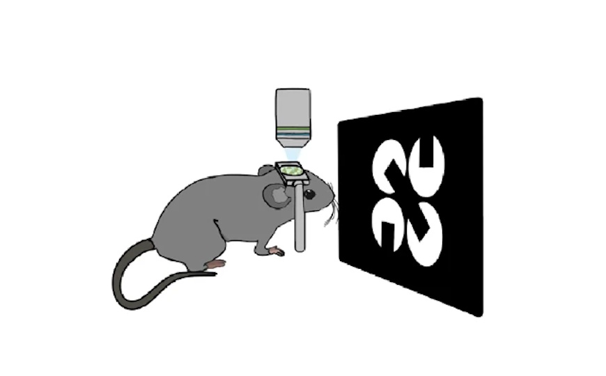 Во время демонстрации мыши иллюзорного контура ученые отслеживали активность ее нейронов с помощью кальциевого сенсора GCaMP6m.