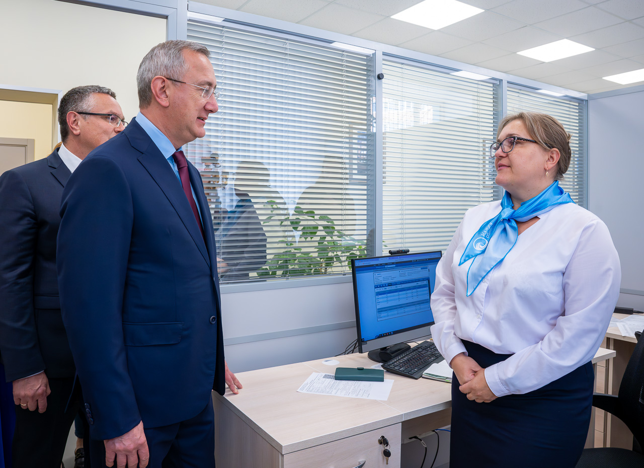 В сопровождении генерального директора предприятия губернатор осмотрел помещения центра, пообщался с его сотрудниками и посетителями. В новом офисе имеется комфортная зона ожидания, предусмотрен детский уголок. Приём граждан осуществляется одновременно в шести окнах. Это значительно сократит время ожидания в очередях и увеличит количество обслуживаемых жителей областного центра. Отдельное помещение выделено под кол-центр.