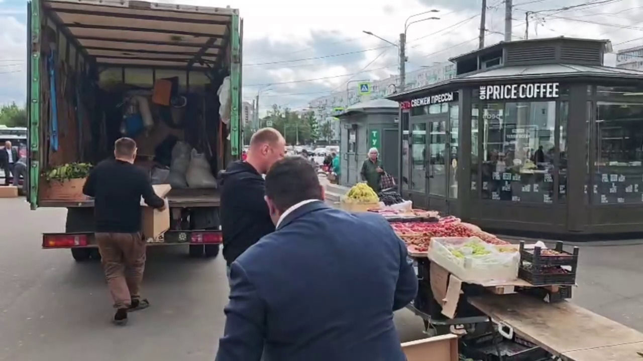 Специалисты изъяли около 300 кг овощей и фруктов, а также мешки с трикотажем, бижутерией и очками, сообщили в официальном канале комитета по контролю за имуществом Санкт-Петербурга.