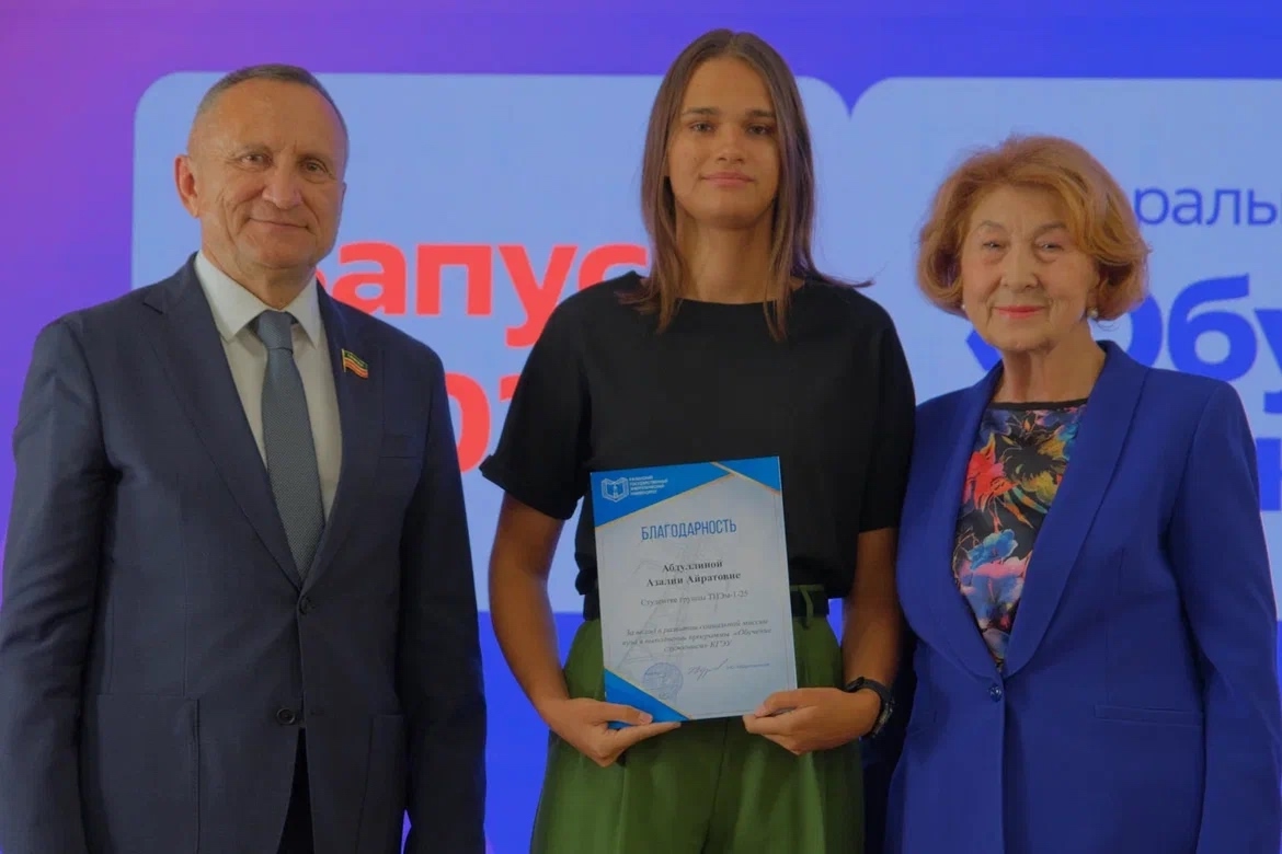 Ректор вручил благодарственные письма командам студентов за проекты, выполненные в "Обучение служением", получившие внешнее признание в Республике Татарстан. Магистрант Газибек Османов поделился своим опытом участия в проекте, призвав студентов к участию в программе "Обучение служением" как возможности сделать реальное доброе дело для людей.
