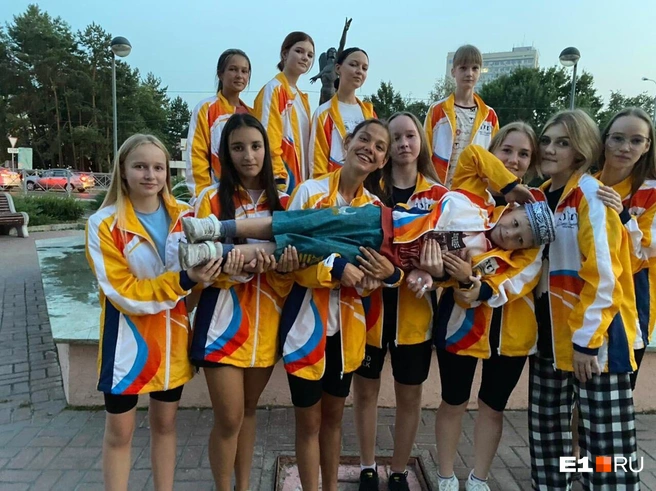 Настя (третья слева в нижнем ряду) улыбается. Даже в компании спортивных девушек видна ее чрезмерная худоба