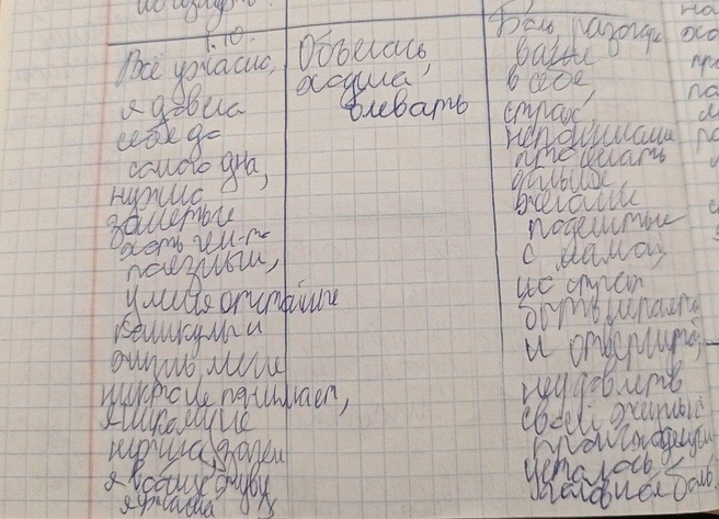 Я снова набрала вес. Из-за этого перестала ходить в школу, забросила танцы и дни напролет сидела дома, испытывая стыд при одной мысли о выходе на улицу. Думала только о еде, весе и о том, что скажут другие. Мама записала меня к психологу, он рекомендовал вести дневник чувств, в котором я фиксировала свои переживания.