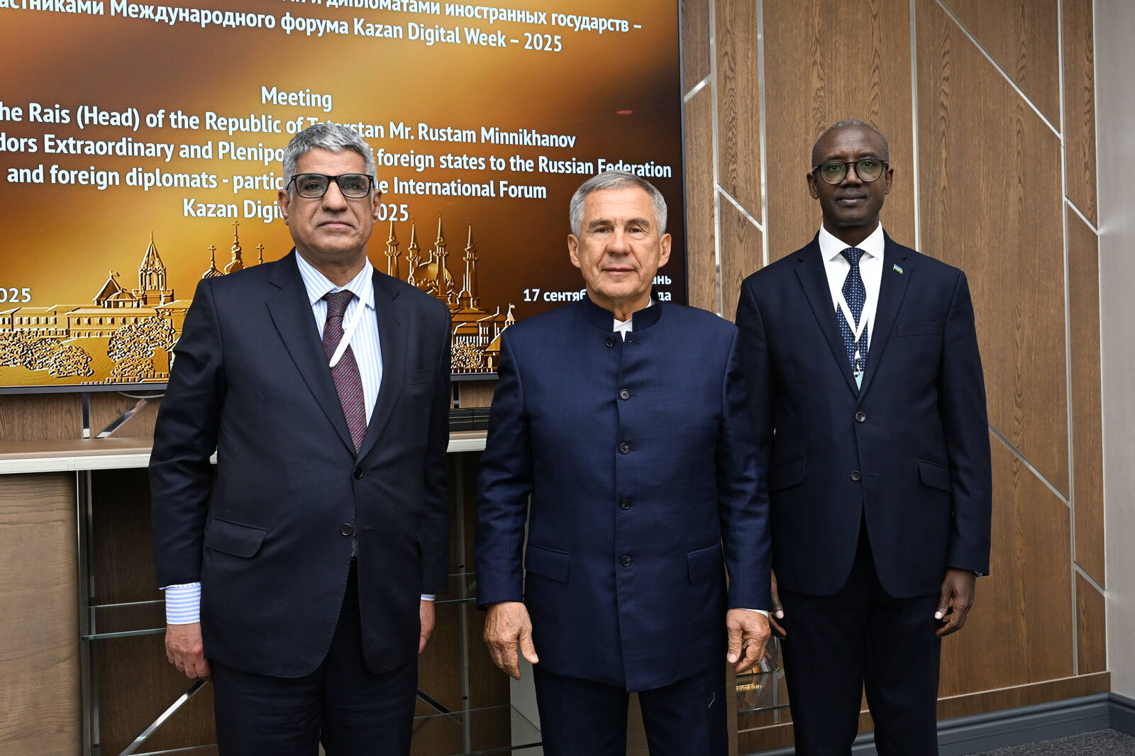 Сегодня у главы Татарстана были и другие встречи. Среди них — с чрезвычайными и полномочными послами и дипломатами иностранных государств в РФ, которые участвуют в Kazan Digital Week. Речь о представителях Кувейта Рашеде Хаммаде аль-Адвани и Руанды Джозефе Нзабамвите.