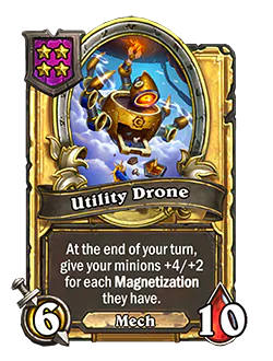 • Old: 4/5. At the end of your turn, give your minions +1/+1 for each Magnetization they have.