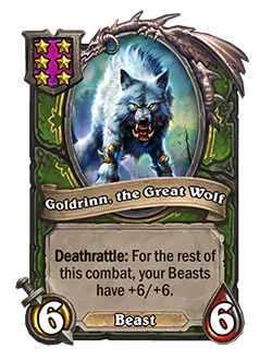• New: 6/6. Deathrattle: For the rest of this combat, your Beasts have +6/+6.
