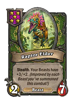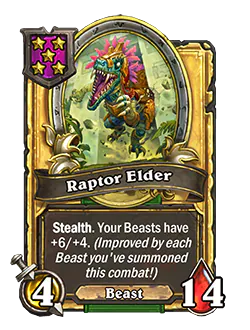 • New: 2/7. Stealth. Your Beasts have +3/+2. (Improved by each Beast you've summoned this combat!)