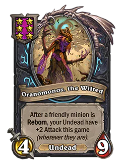 • New: [Tier 6] 4/9. After a friendly minion is Reborn, your Undead have +2 Attack this game (wherever they are).