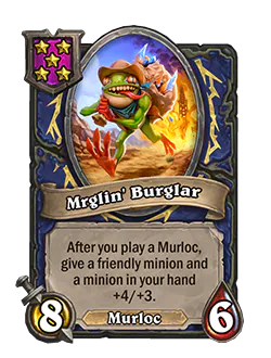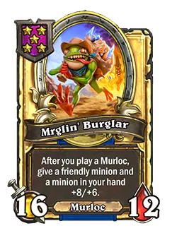 • New: 8/6. After you play a Murloc, give a friendly minion and a minion in your hand +4/+3.