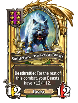 • Old: 5/5. Deathrattle: For the rest of this combat, your Beasts have +5/+5.