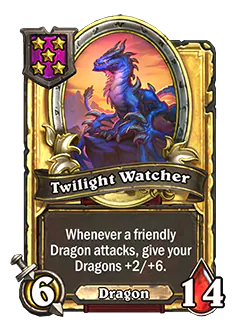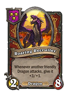 • Old: 3/8. Whenever a friendly Dragon attacks, give your Dragons +1/+2.