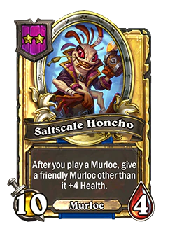 • New: 10/5. At the end of your turn, trigger the Battlecries of adjacent Murlocs.
