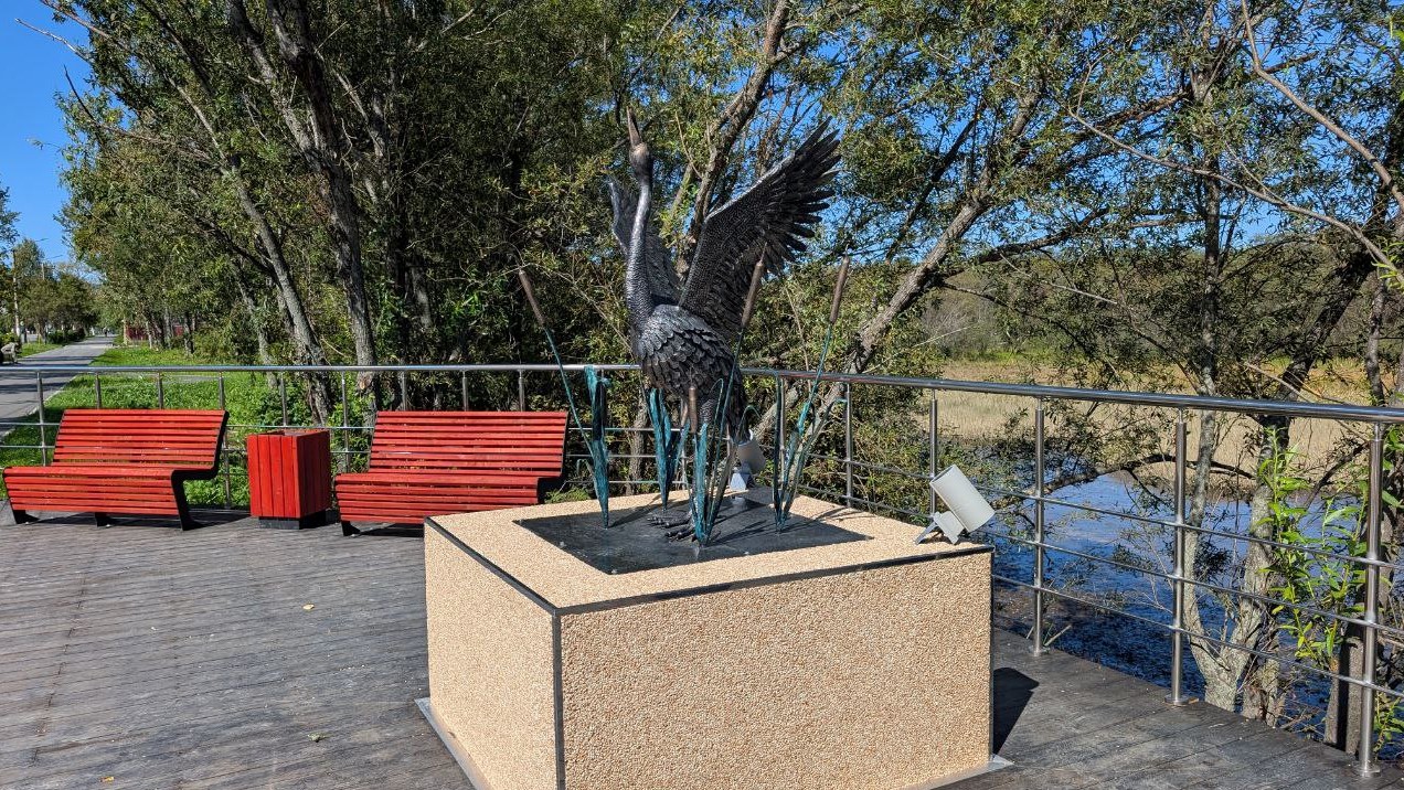 Подрядчики выполнили основной объем работ на аллее: уложили около километра нового асфальта, смонтировали бордюры, настилы и ограждения, заменили опоры освещения и обустроили смотровые площадки с видом на приток Лютоги. Центральным элементом новой общественной территории стала скульптура цапли, выполненная из кованого железа. Как сообщили ТИА "Острова" в министерстве ЖКХ Сахалинской области, для окончательного завершения проекта рабочим осталось обустроить велосипедную дорожку и подключить систему видеонаблюдения.