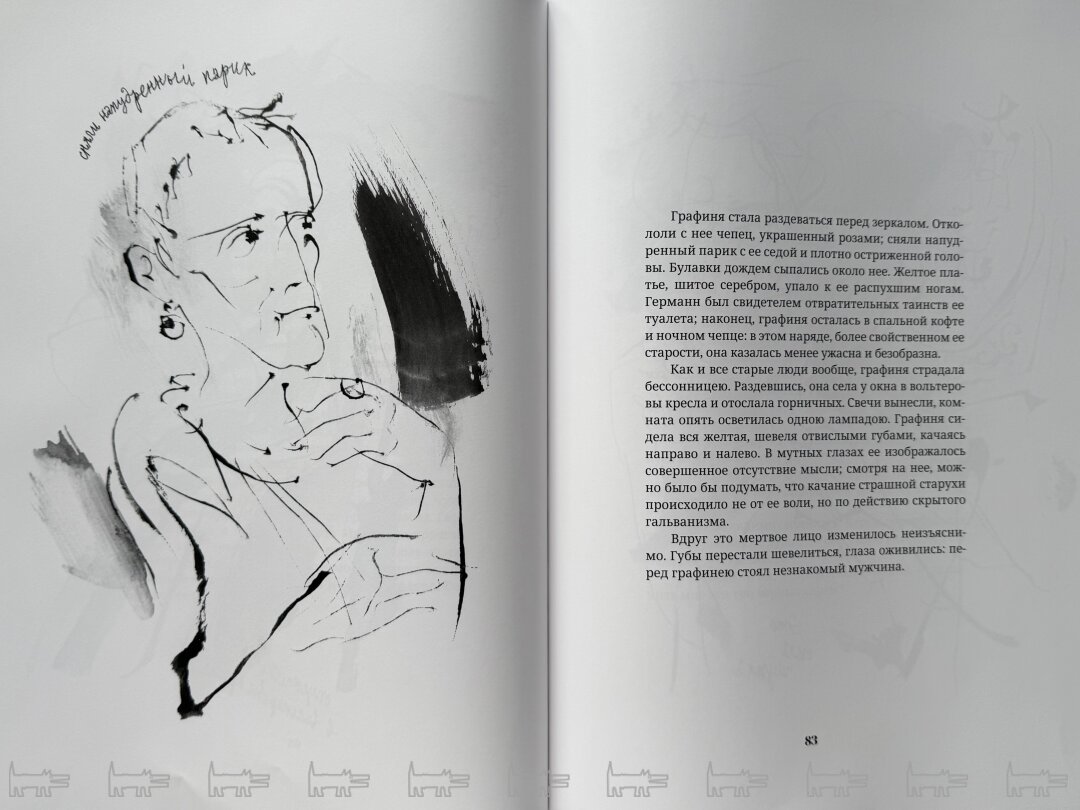 В арт-буке художник вступает в творческий диалог с Пушкиным и отходит от классического прочтения повести, переосмысляя через призму «авторской каллиграфии».