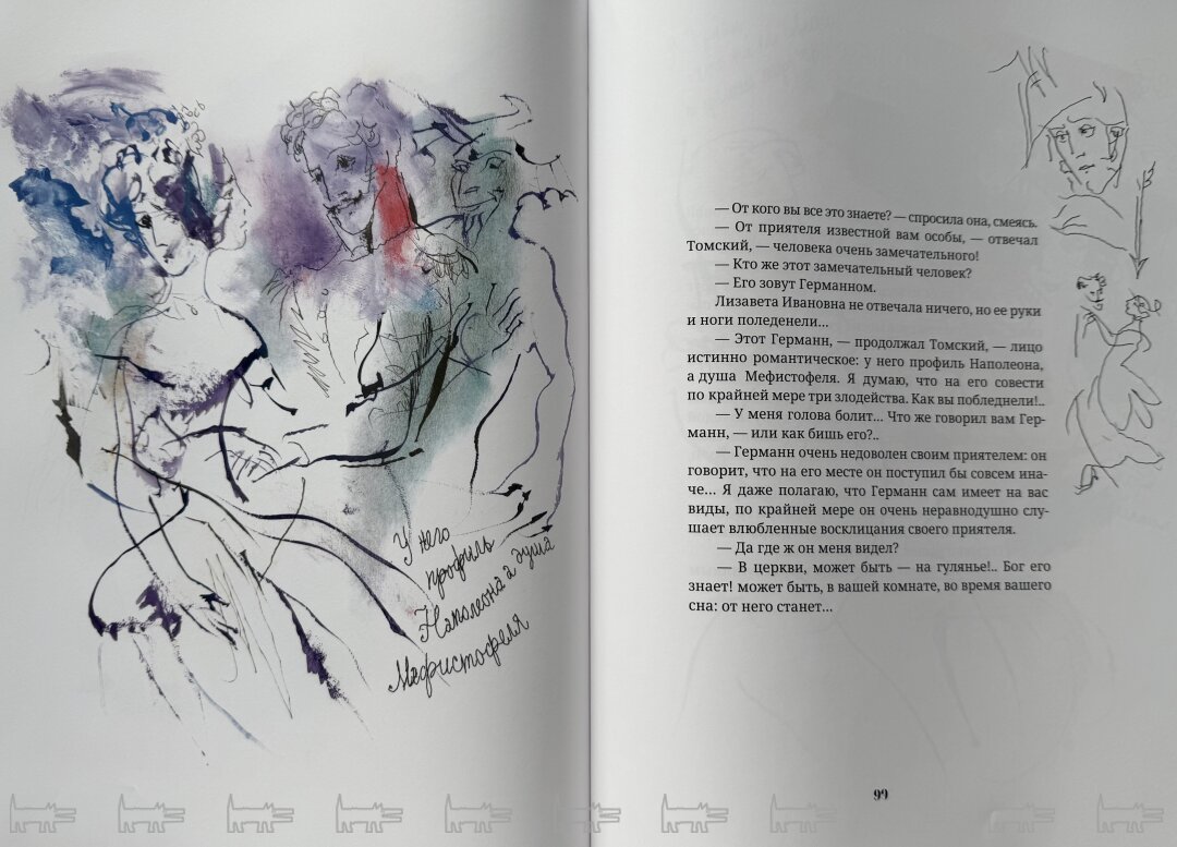 В 2025 году в издательствах «Волки на парашютах»: Редакция Аси Петровой и «Смарт-Бук» вышла «Пиковая дама» с иллюстрациями Александра Траугота — художника и скульптора, наследника феноменальной династии живописцев, автора культовых иллюстраций к Андерсену и Набокову, лауреата нашей премии«ТОП50. Самые знаменитые люди Петербурга».
