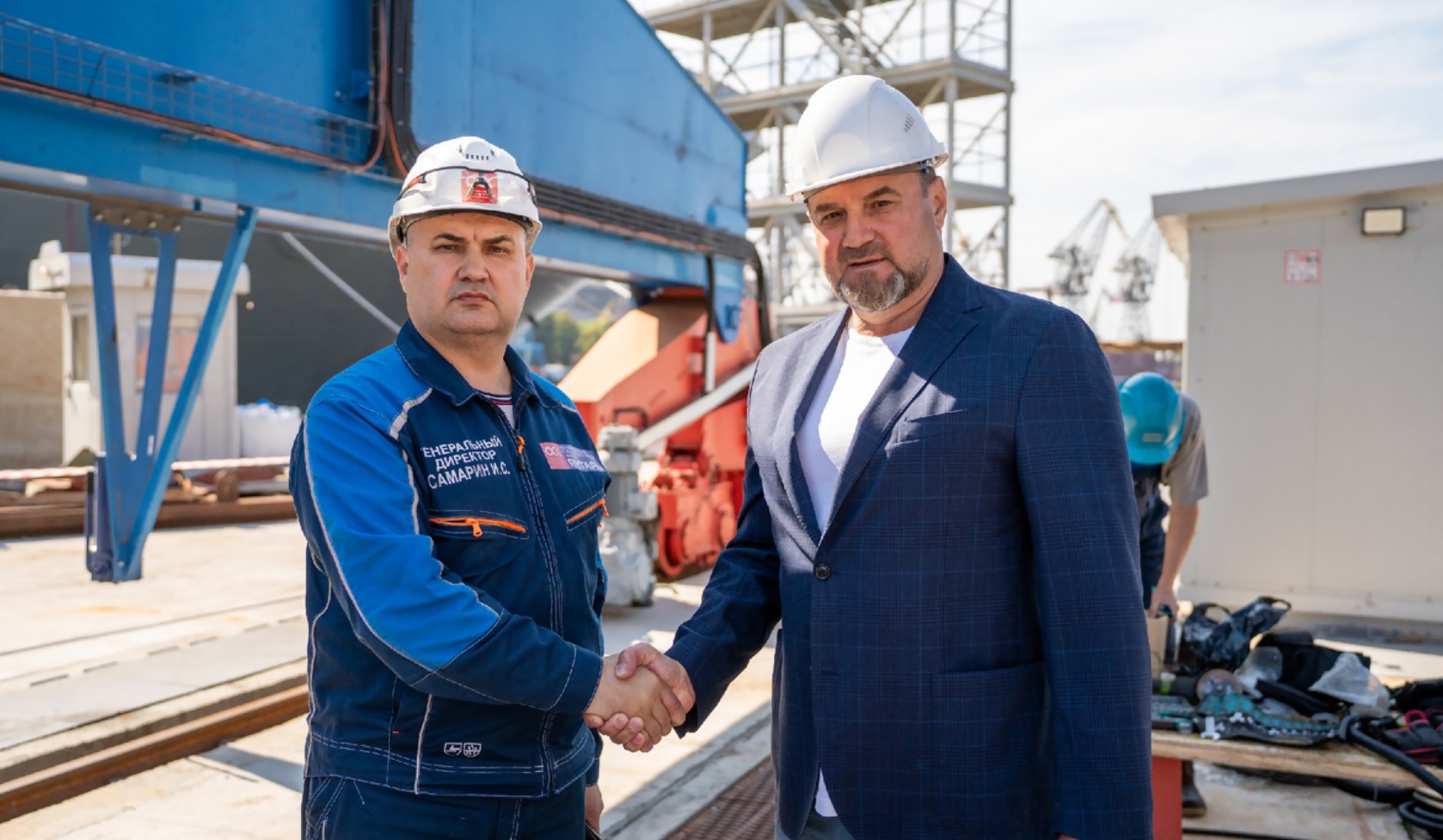 Генеральный директор завода ОСК «Янтарь» Илья Самарин при подписании акта приема-передачи строительной площадки с ООО «Альянс Сервис» поздравил подрядчиков с началом работ: «После подписания договора мы начнем фундаментально подходить к процессу строительных работ. Завершение установки крана — значимое событие для нашего предприятия. Надеемся, сотрудники фирмы проявят усердие, а мы, со своей стороны, готовы оказывать необходимую помощь. Мы очень заинтересованы в этом кране». Завершение установки 4-го портального крана на набережной № 5 и ввод его в эксплуатацию намечен на середину ноября.