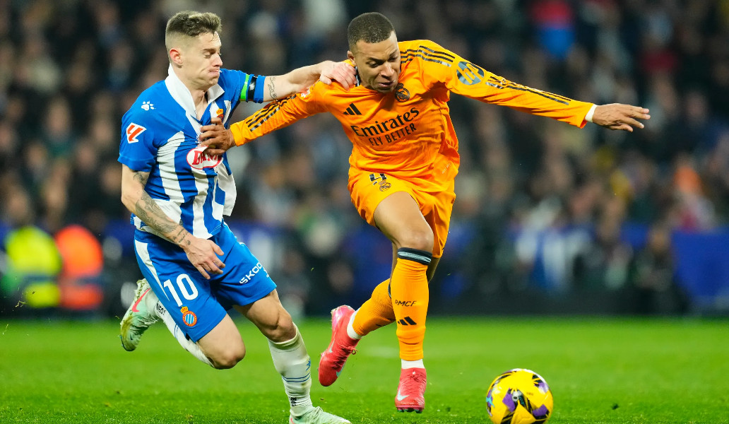 Кильян Мбаппе – лучший бомбардир «Реала» в сезоне, однако в феврале он не помог мадридцам спастись от поражения в игре с «Эспаньолом» – 0:1. Фото: Jose Breton / Pics Action / NurPhoto via Getty Images