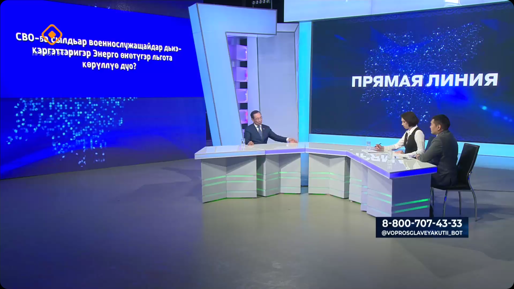 Вопросы можно направлять через чат-бот Telegram @voprosGlaveYakutii_bot или по телефону колл-центра: 8 (4112) 506-006 (время работы — с 09:00 до 18:00). Приём вопросов будет осуществляться вплоть до завершения эфира 27 сентября.