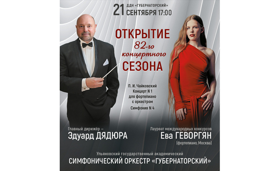 21 сентября в 17:00 на сцене ДК «Губернаторский» симфонический оркестр «Губернаторский» под управлением главного дирижёра Эдуарда Дядюры даст старт 82-му концертному сезону. В программе поучаствует лауреат Международного конкурса пианистов, композиторов и дирижёров имени Рахманинова Ева Геворгян из Москвы.