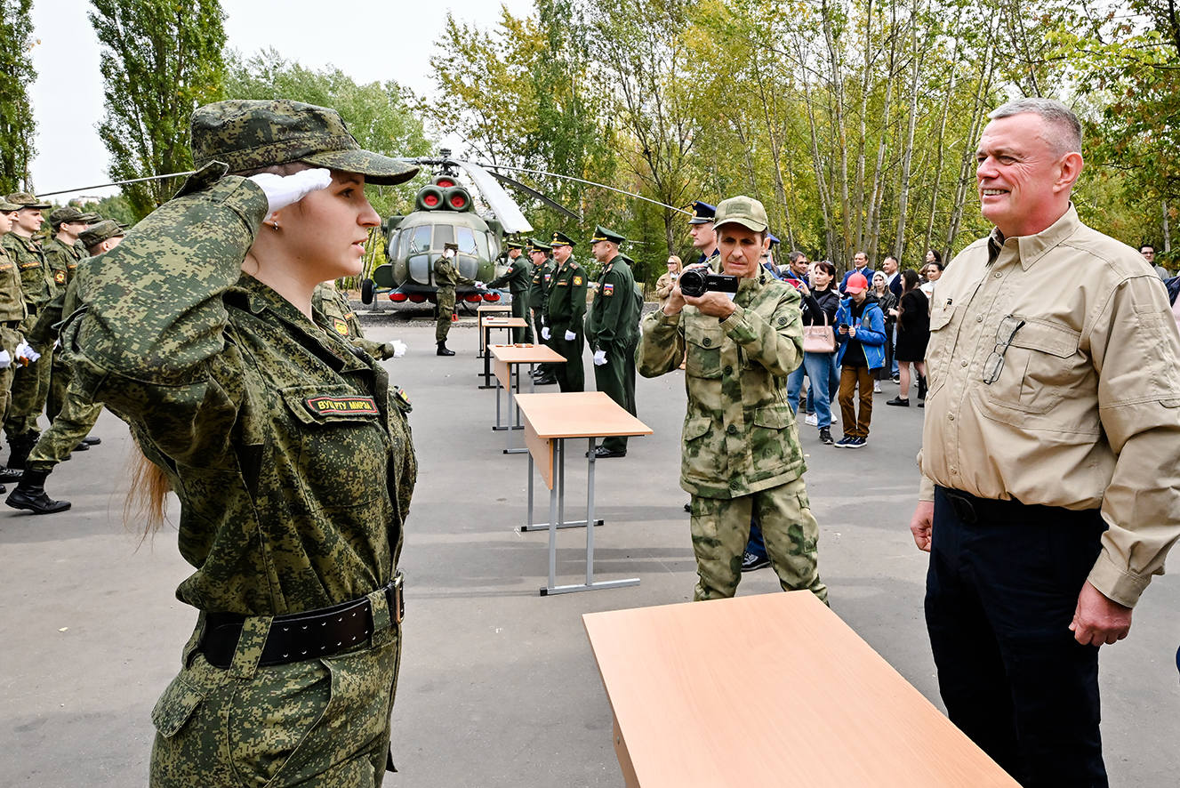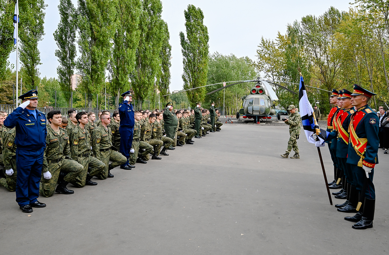 Церемония включала торжественный вынос флагов и знамён, зачитывание приказа Министра обороны Российской Федерации, вручение погон с ответом «Служу России!», прощание с флагом ВУЦ под барабанный бой и исполнение гимна России.