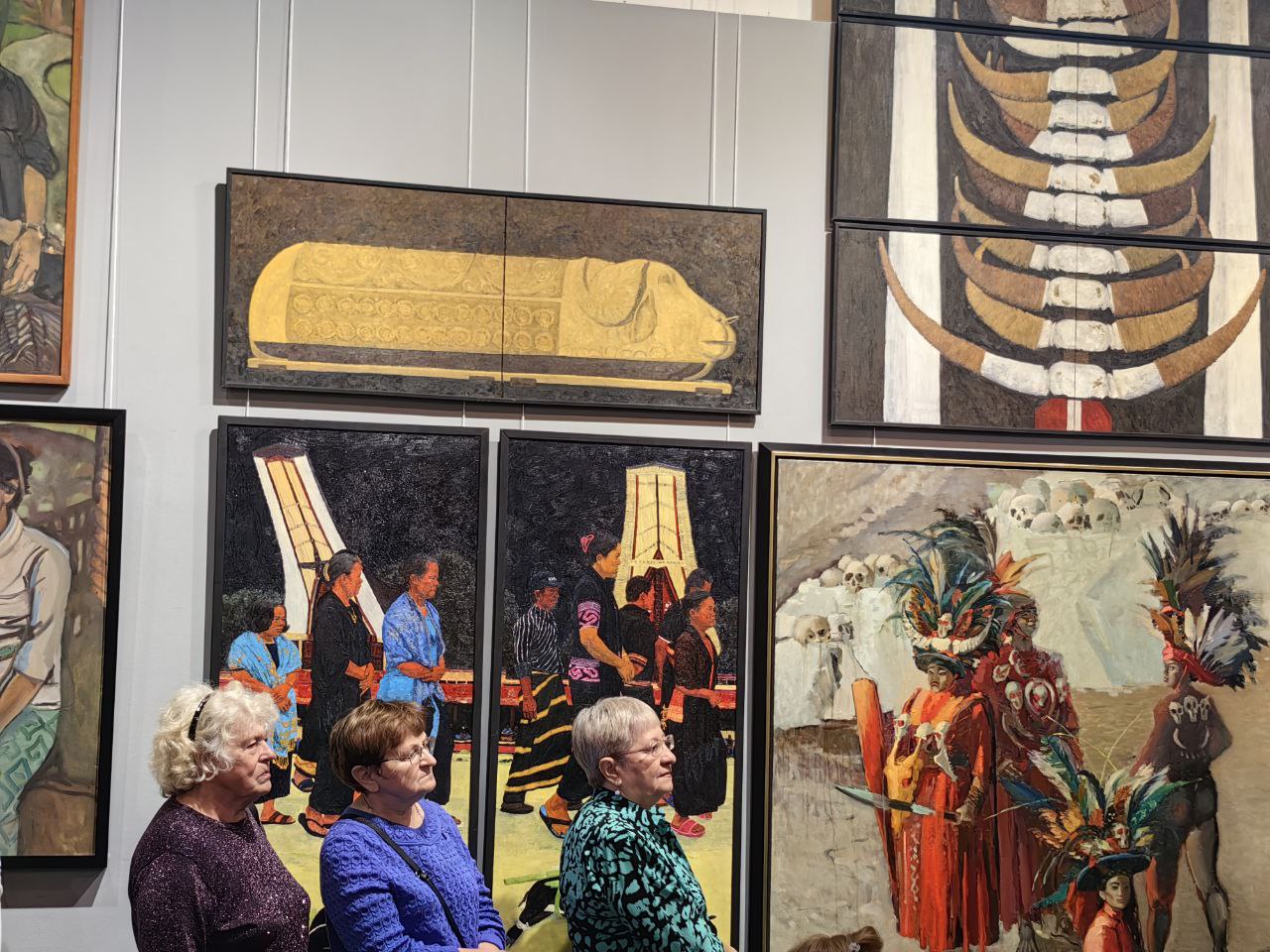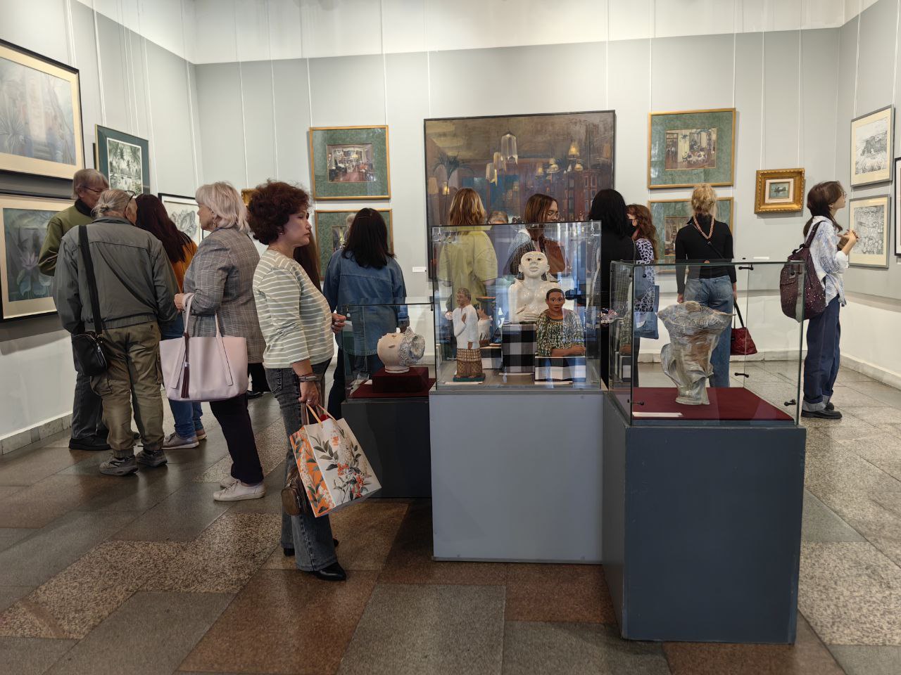Каждый из фрагментов яркой экспозиции рассказывает свою историю, каждое из произведений звучит по-своему, исполняет свою партию: на пейзажах замерли у причала отдыхающие судёнышки; величественно возвышается буддийский храм Боробудур, внесённый в список ЮНЕСКО; талантливо схвачены сценки обыденной жизни островитян; монументальные полиптихи посвящены традициям населения острова Сулавеси, на офортах богатая тропическая растительность соседствует с архитектурными достопримечательностями.